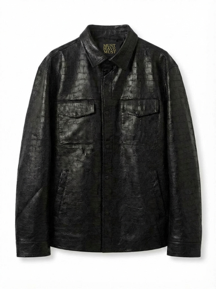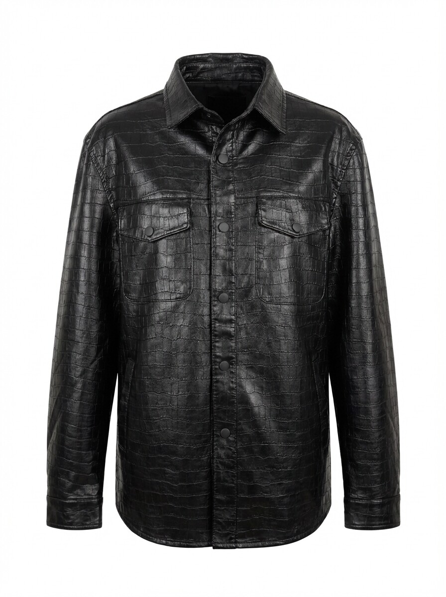 은은한 광택과 크로커다일 엠보 패턴이 어우러진 셔츠 자켓.