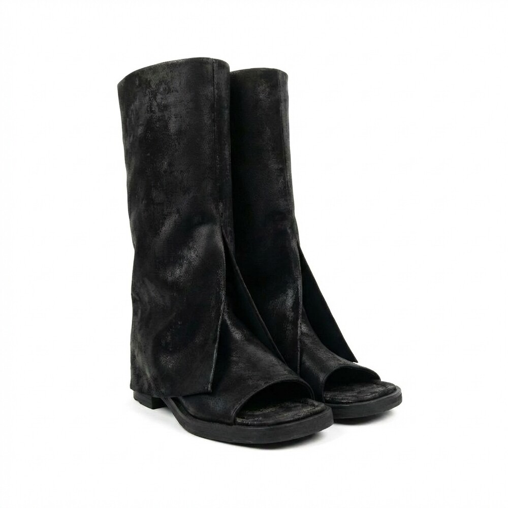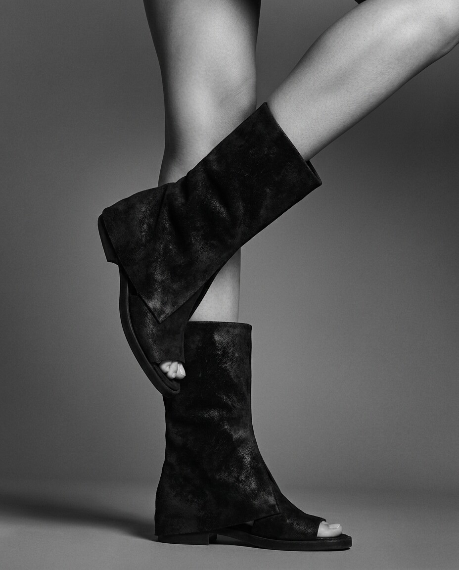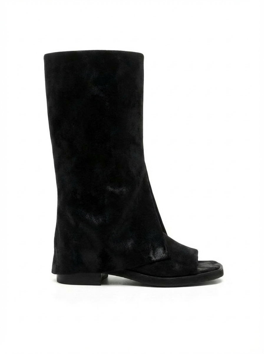 스웨이드 소재로 제작한 오픈토 부츠.