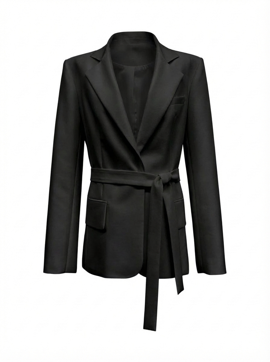 허리 벨트 디테일로 실루엣 조절 가능, 묶는 방식에 따라 구조적인 라인 혹은 여유 있는 핏 연출.